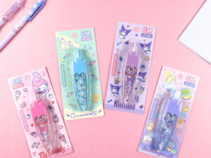เทปลบคำผิดแบบกด ลิขสิทธิ์แท้ 100% จาก Sanrio / San-X ความยาว 6 เมตร ลบเนียน เขียนทับได้ทันที ไม่มีคราบ มีให้เลือก 4 ลายสุดฮิต: Cinnamoroll, My Melody, Kuromi และ Sumikko Gurashi ระบบกดใช้งานง่าย ขนาดพกพาสะดวก ลายพิมพ์คมชัด สีสวย เหมาะสำหรับนักเรียน นักศึกษา และแฟนคลับ Sanrio / San-X